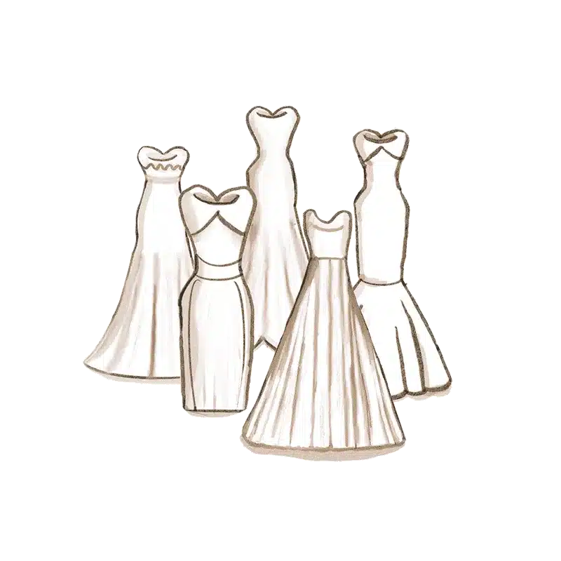 Wir bieten Dir die gesamte Palette an Brautkleiderschnitten, wie klassische A-Linien-Hochzeitskleider und opulente Prinzessinnenroben. Vielleicht träumst Du von einem Fit & Flare oder Mermaid-Brautkleid, das auf wundersame Weise Deine Kurven betont, oder Du träumst von schicken Empire- und Duchesse-Brautkleidern. Darüber hinaus führen wir wunderschöne Minikleider für das Standesamt oder wenn Du einen unkonventionelleren Look bevorzugst.