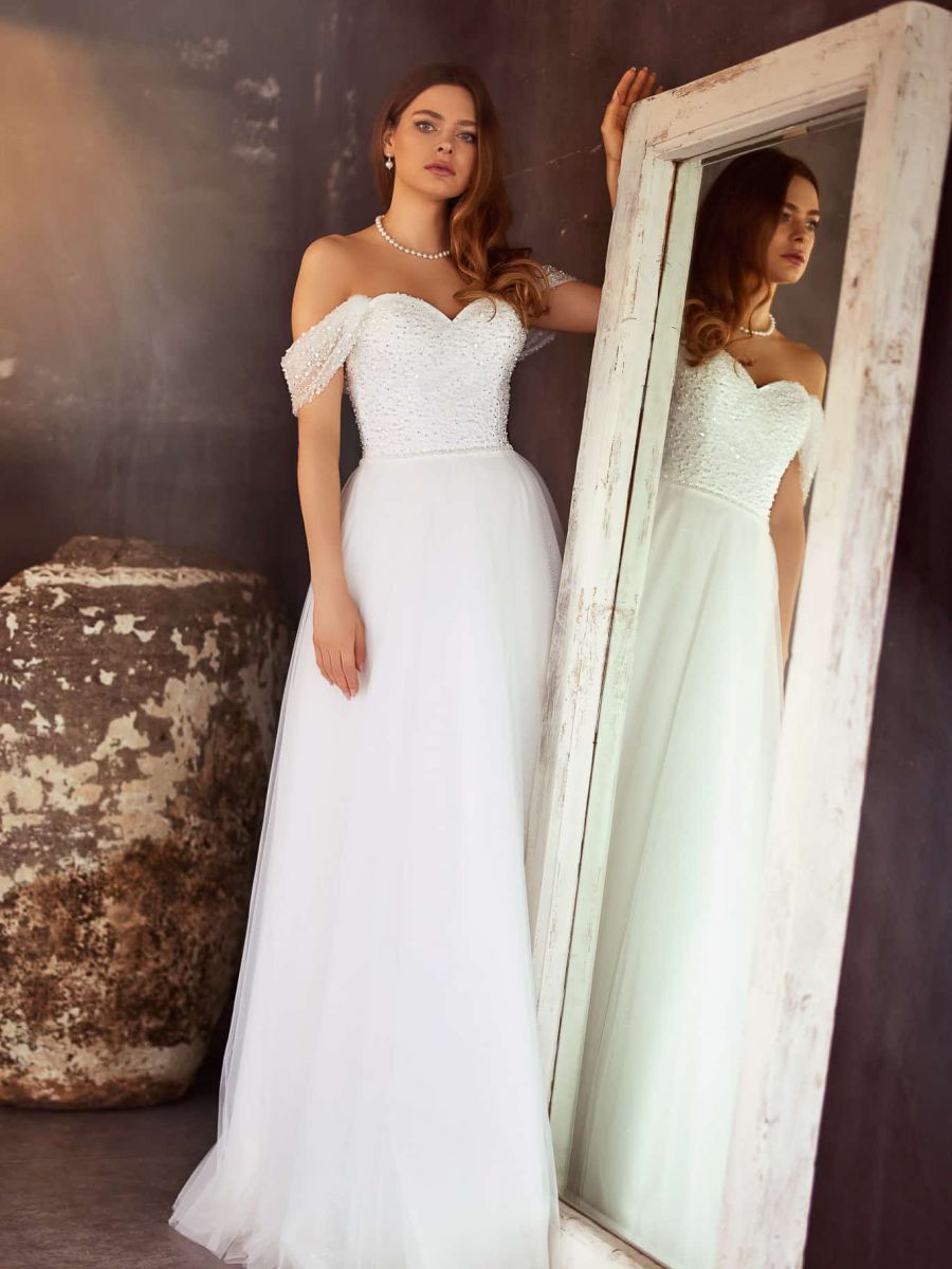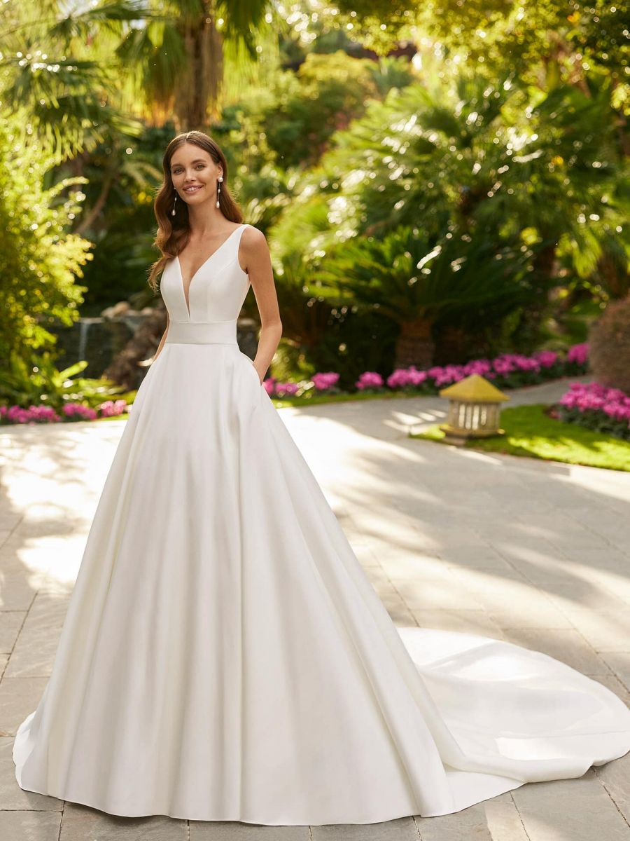 Die A-Linie zaubert eine schlanke Silhouette, kaschiert geschickt und betont den Oberkörper– ein Klassiker für jede Braut und jeden Anlass.