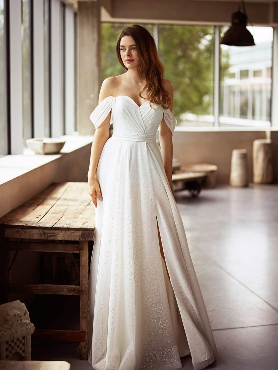 Offshoulder-Brautkleider sind schulterfrei, die Träger aus Tüll, Spitze, oder Chiffon fallen locker von den Schultern. Sie sind ein Detail des Kleides ohne Halt zu geben. Dieses wirkt sehr locker und sinnlich zugleich. Die offhsoulder-Träger highlighten das Dekolleté und den Ausschnitt sowie auch die Schultern der Braut. Dieser Ausschnitt eignet sich optimal für die Braut mit schönen Schultern, schöner Haut und einem schönen Dekolleté!