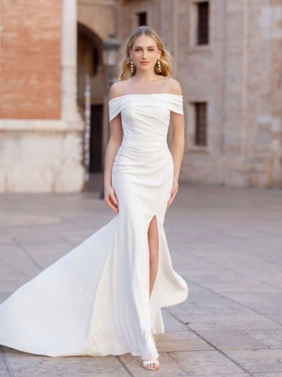 Das Etui-Kleid ist modern, figurbetont und sinnlich – ideal für selbstbewusste Bräute, mit schönen Beinen.
