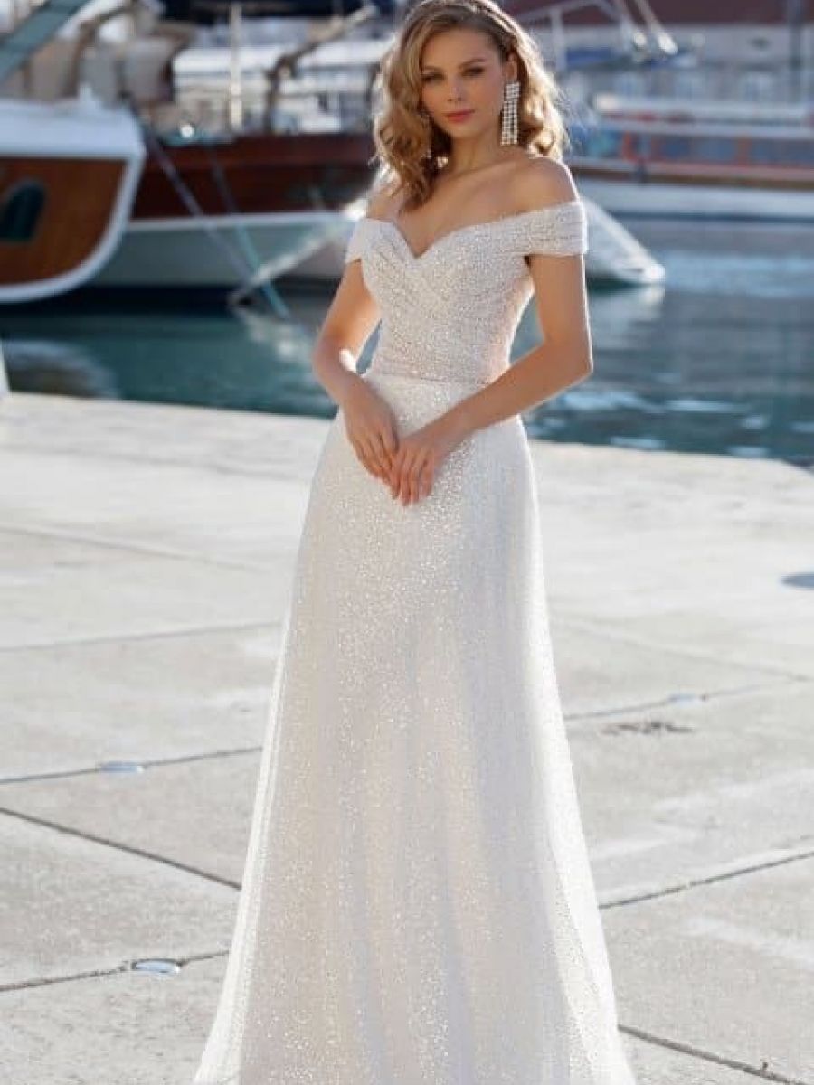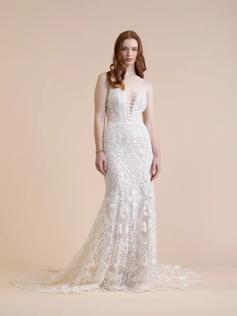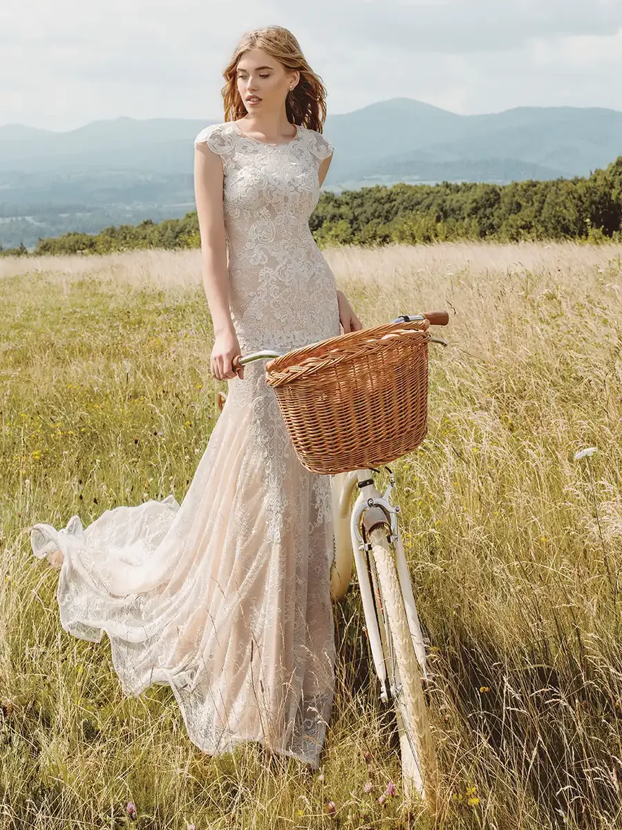 Der Fit and Flare-Schnitt ist eine mehr und mehr verbreitete Silhouette bei Brautkleidern, die Eleganz und Figurbetonung kombiniert. „Fit and Flare“ bedeutet übersetzt in etwa „eng anliegend und ausgestellt“. Das Kleid liegt eng an Oberkörper, Taille und Hüfte an und geht dann ab Anfang der Oberschenkel oder kurz darunter in einen ausgestellten oder fließenden Rock über.