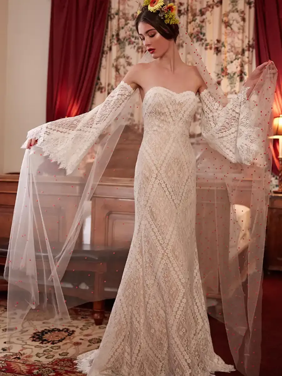 Ein echter Hingucker-Schnitt ist das Meerjungfrauenkleid, welches auch „fishtail“ genannt wird. Der Körpernahe Sitz betont die weibliche Silhouette und setzt Kurven – vor allen den Po – perfekt in Szene. Erst ab Kniehöhe ist der Rock weiter ausgestellt. Perfekt für: Schlanke Bräute mit weiblichen Kurven und für mittelgroße bis große Frauen. Ideal auch für das Standesamt.